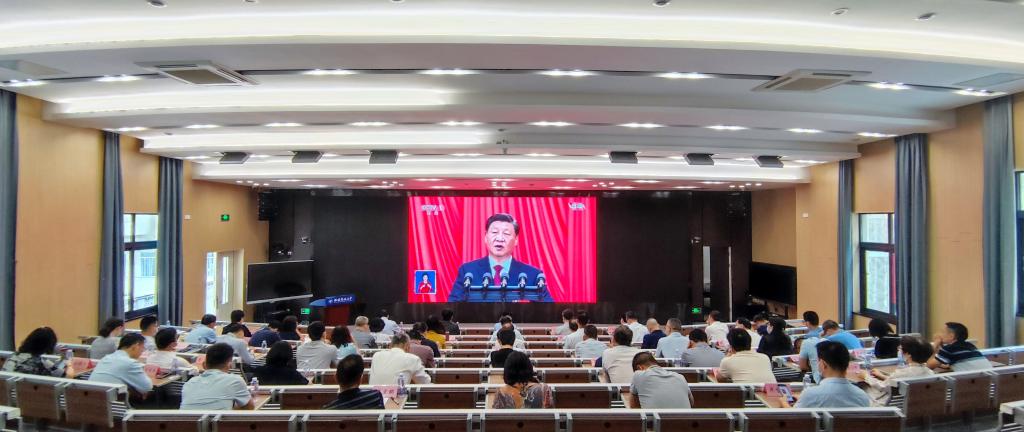 党的二十大是在全党全国各族人民迈上全面建设社会主义现代化国家新征程、向第二个百年奋斗目标进军的关键时刻召开的一次十分重要的大会。大会主题是高举中国特色社会主义伟大旗帜,全面贯彻新时代中国特色社会主义思想,弘扬伟大建党精神,自信自强、守正创新,踔厉奋发、勇毅前行,为全面建设社会主义现代化国家、全面推进中华民族伟大复兴而团结奋斗。在观看直播现场,广大师生党员认真聆听、仔细记录,对大会报告的精彩内容和频频金句产生强烈共鸣。