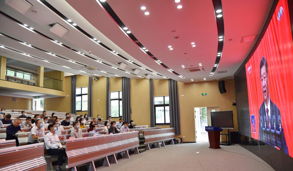 10月16日上午10时,中国共产党第二十次全国代表大会在北京隆重召开,习近平代表第十九届中央委员会向党的二十大作报告。学校全体党员干部和广大师生以饱满的热情和昂扬的精神面貌,认真收听收看党的二十大开幕盛况。校领导和处级以上干部在桂山校区智慧教室,职业学院师生代表在明德楼数字学习体验中心,集中收看大会开幕式直播。各党支部以在线学习、交流研讨等方式,组织广大师生认真收听收看、学习领会大会报告。