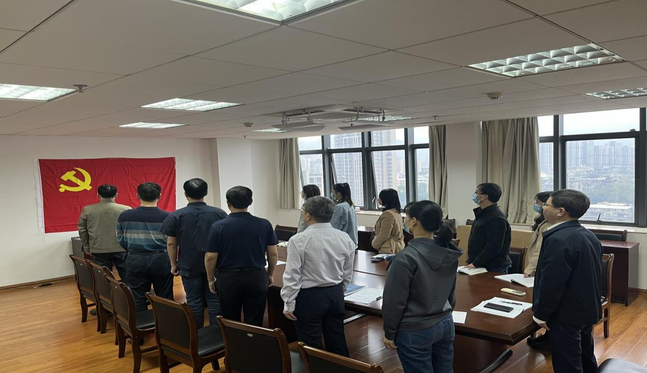 全体党员起立面向党旗奏唱国际歌