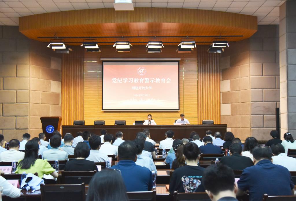 6月19日,学校在桂山校区召开党纪学习教育警示教育会,传达学习习近平总书记关于全面加强党的纪律建设的重要论述,贯彻落实全省警示教育会和全省高校党纪学习教育警示教育交流研讨会精神,通报剖析违纪违法典型案例,教育引导全校党员干部筑牢拒腐防变的思想防线,为推进学校事业高质量发展提供坚强保障。党委书记庄莉主持会议并讲话。在家校领导、科级以上干部,基层党组织书记、纪检委员等120余人参加会议。