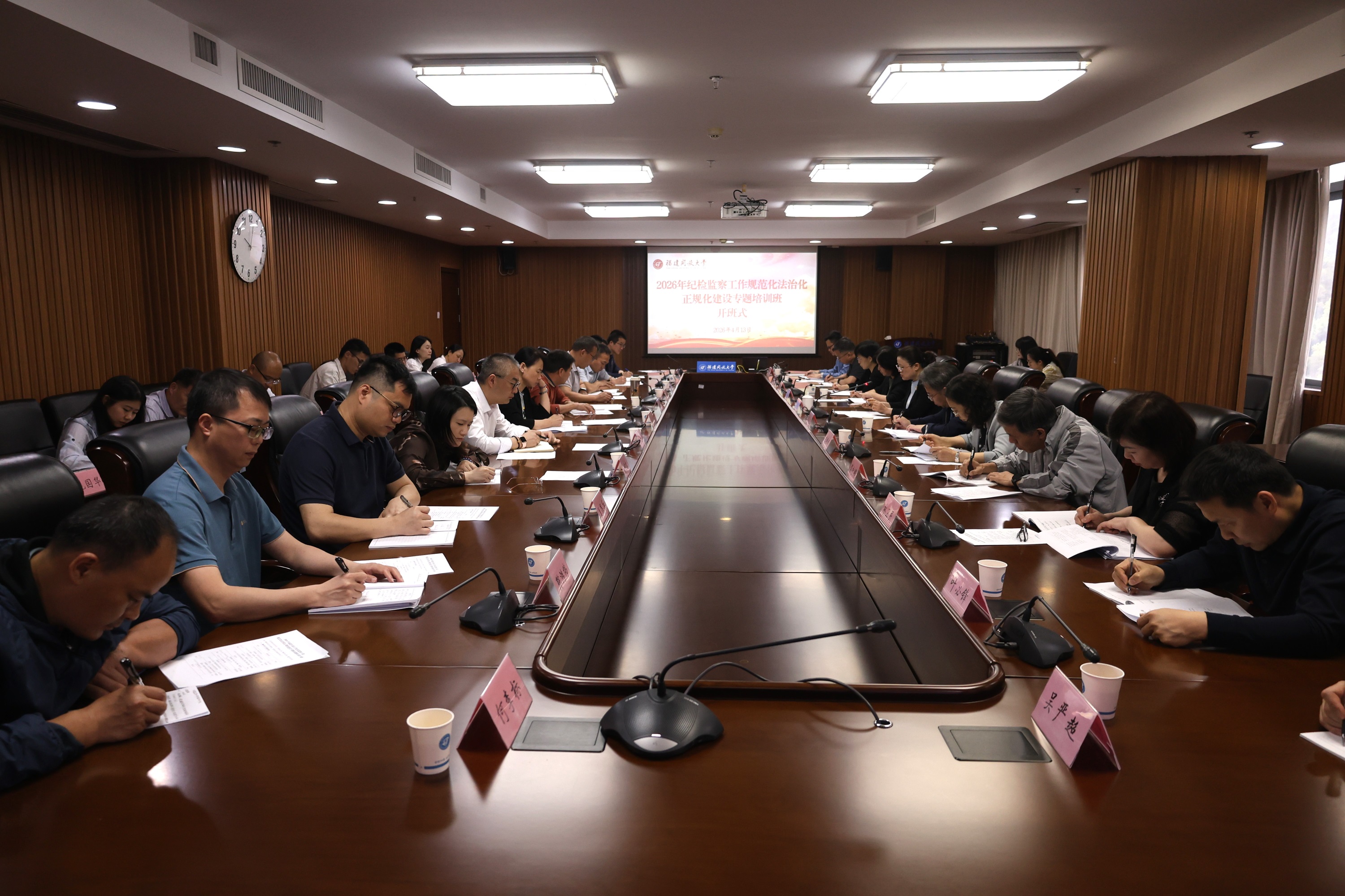 为深入开展树立和践行正确政绩观学习教育,贯彻落实二十届中央纪委五次全会、省纪委十一届六次全会精神,持续提升纪检监察干部履职能力和水平,4月13日至15日,校纪委举办2026年纪检监察工作规范化法治化正规化建设专题培训班。校纪委委员、基层党组织纪检委员、纪检监察室人员参加培训。